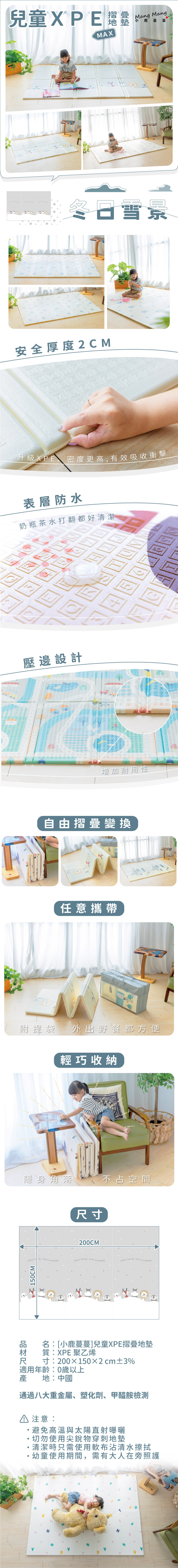 【小鹿蔓蔓】兒童 XPE 摺疊地墊 MAX 版,兼具 安全防護、清潔便利、靈活摺疊、便攜收納,是每個家庭必備的兒童遊戲地墊,為孩子打造安心舒適的遊戲空間。